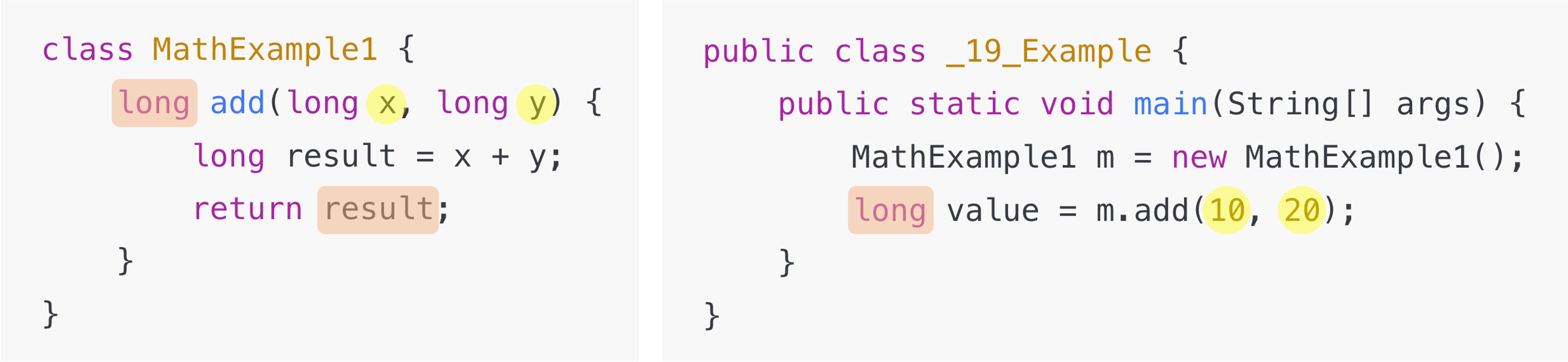 이때 반환값 result의 타입, add 메서드의 반환 타입, 반환값을 저장하는 변수 value의 타입이 long 타입으로 서로 일치함